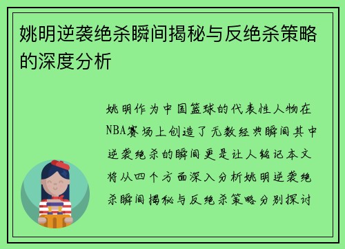 姚明,作为中国篮球的代表性人物,其职业生涯充满了挑战与坚持。他从小在篮球的熏陶中成长,最终成为NBA历史上第一位中国状元秀。然而,他的篮球之路并非一帆风顺。在面对伤病、心理压力以及文化差异等困境时,他曾感到无奈,却始终未放弃对篮球的热爱与追求。本文将从四个方面探讨姚明在其篮球生涯中所面临的挑战,包括身体伤害、心理压力、文化适应和对中国篮球的贡献,并分析他如何在这些困境中坚持自我,继续前行。 1、...
