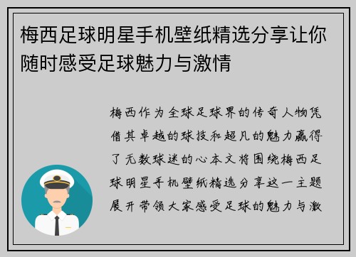 梅西足球明星手机壁纸精选分享让你随时感受足球魅力与激情