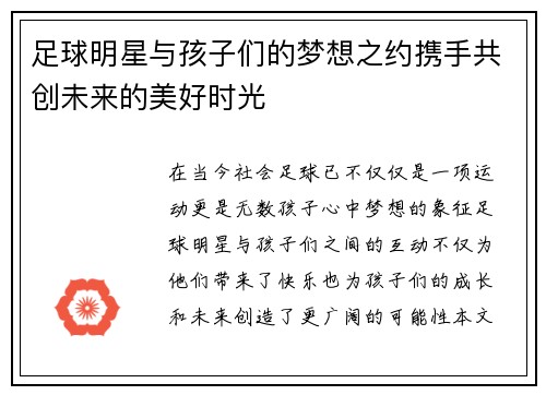 足球明星与孩子们的梦想之约携手共创未来的美好时光