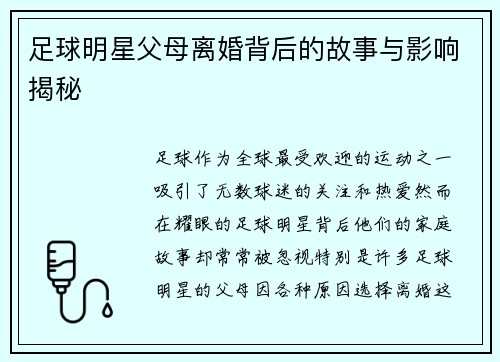 足球明星父母离婚背后的故事与影响揭秘